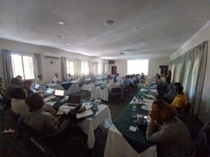 Das jährliche National Rhino Strategy Meeting in der obersten Nationalparkbehörde in Harare. Seit Jahren nehmen AWARE Germany e.V. und der AWARE Trust daran beratend teil.